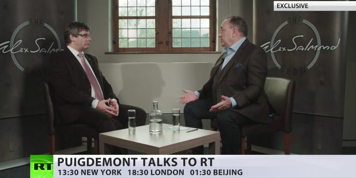 Alex Salmond, the former first minister of Scotland, said he had been hired to host a show on RT, the Kremlin-sponsored propaganda network Russia Today.